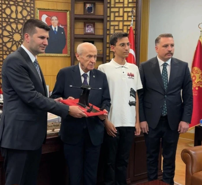 "Ülkü Ocakları Adana İl Başkanlığı bünyesinde faaliyet gösteren KAAN Teknoloji Kulübü'nün geliştirdiği, 24-26 Haziran'da ABD/Washington DC'de düzenlenecek SUAS-2025 yarışmasında ülkemizi temsil edecek olan ve liderimizin adını verdiği 'TÜRKHAN' İHA prototipini Liderimiz Sayın Devlet Bahçeli Beyefendi'ye takdim ettik." dedi.