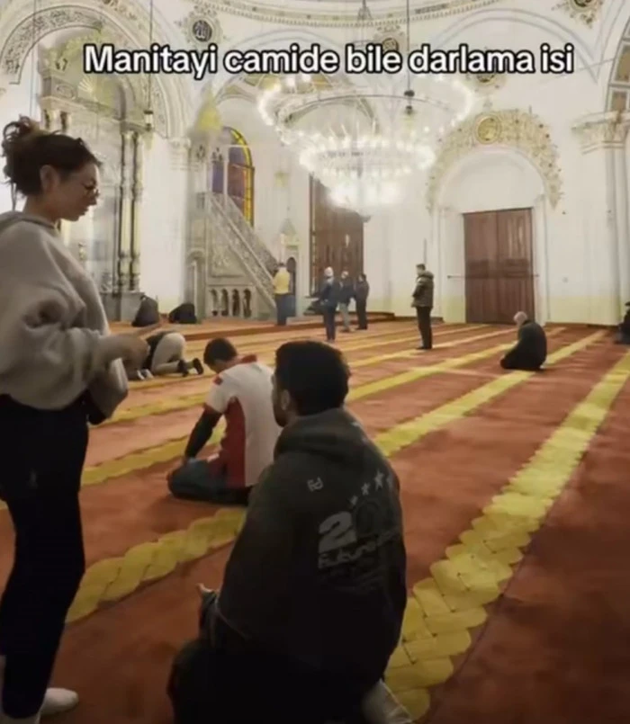 Görüntülerde, bir genç kızın ibadethane içerisinde manevi ortama aykırı şekilde davrandığı ve rahatsız edici hareketler sergilediği görüldü.